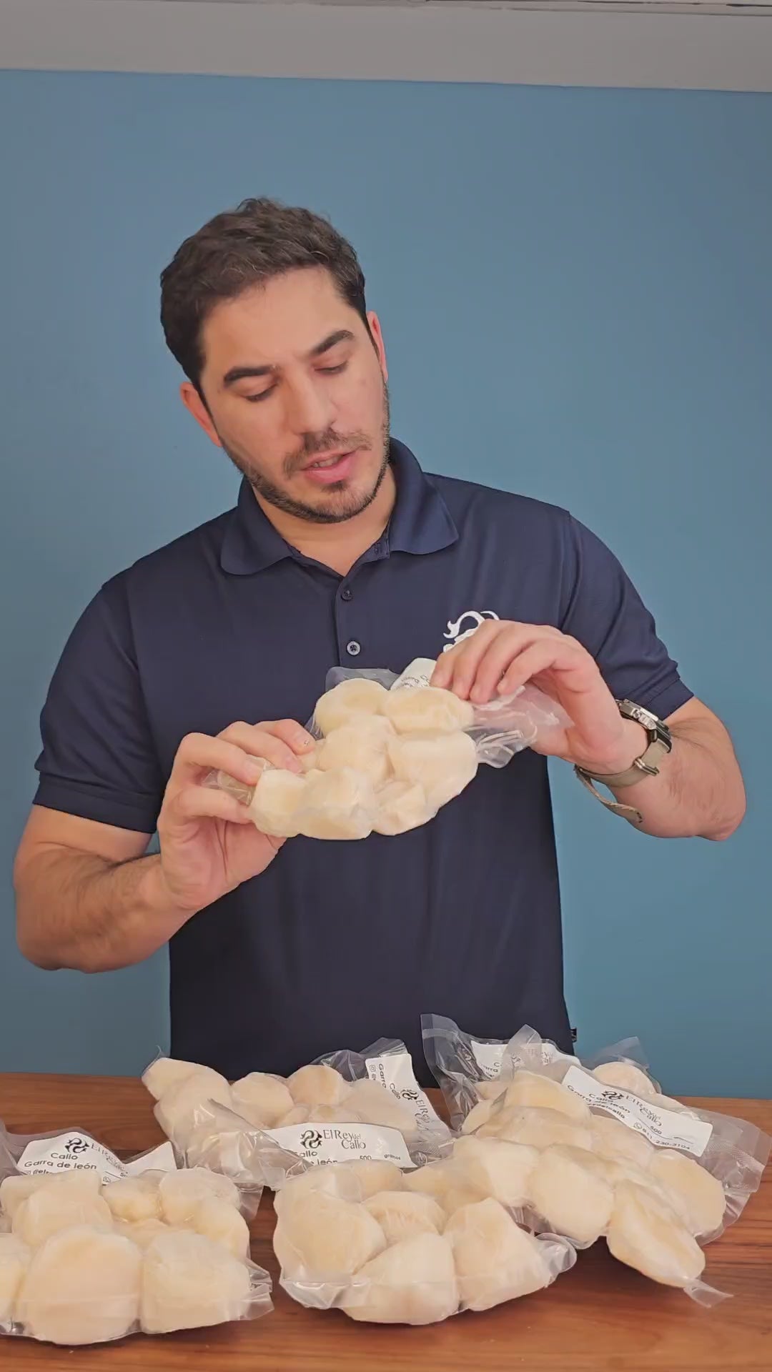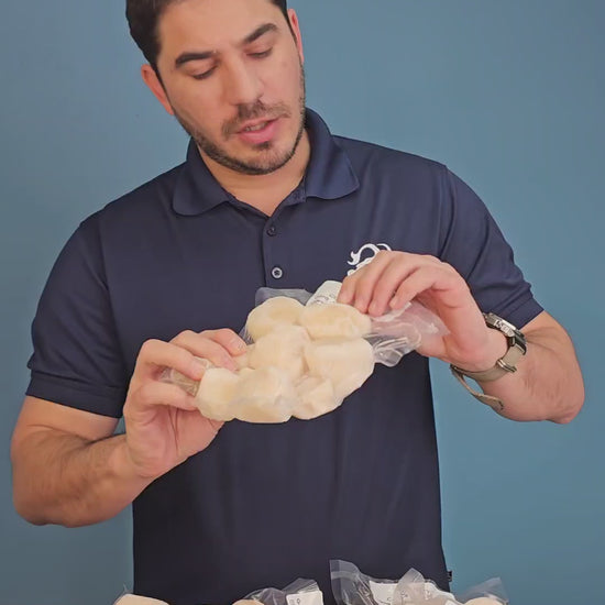 Presentación medio kilo congelado individualmente, empacado al alto vació